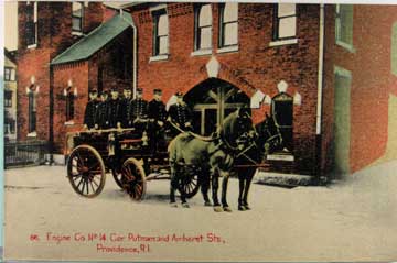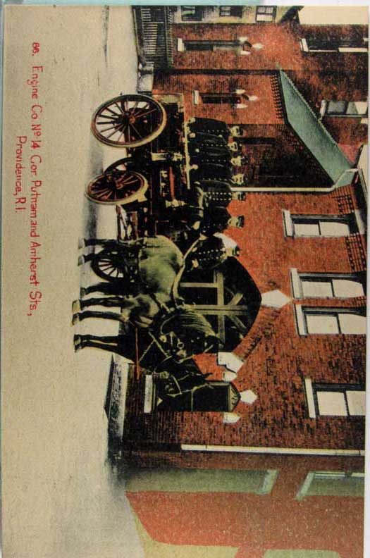 Card # 171434. View Larger | Rotate Horse-Drawn Fire Engine, Providence, Rhode Island, Tinted Photogravure DB VF