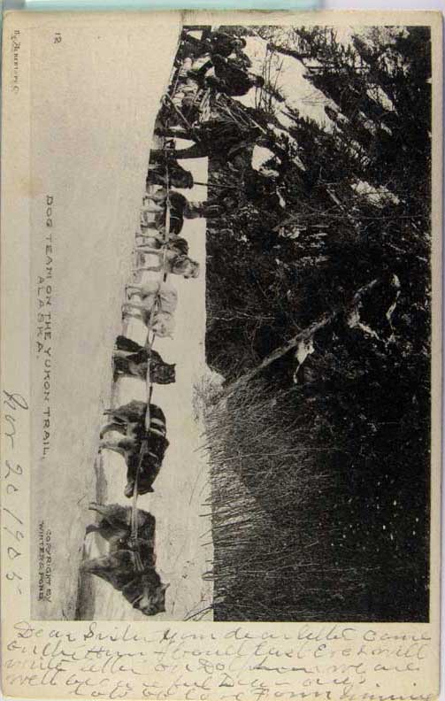 Card # 186653. View Larger | Rotate Dogsled, Yukon Trail, Alaska, Photogravure, Used Juneau 1905 UB pwof Near VF