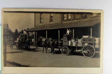 Card # 134351. View Larger | Rotate Horse-Drawn Wagon, Adv. “Acme” w/ Maryland Biscuit Co. Box, Real Photo, Used 1909 m cor wear VF