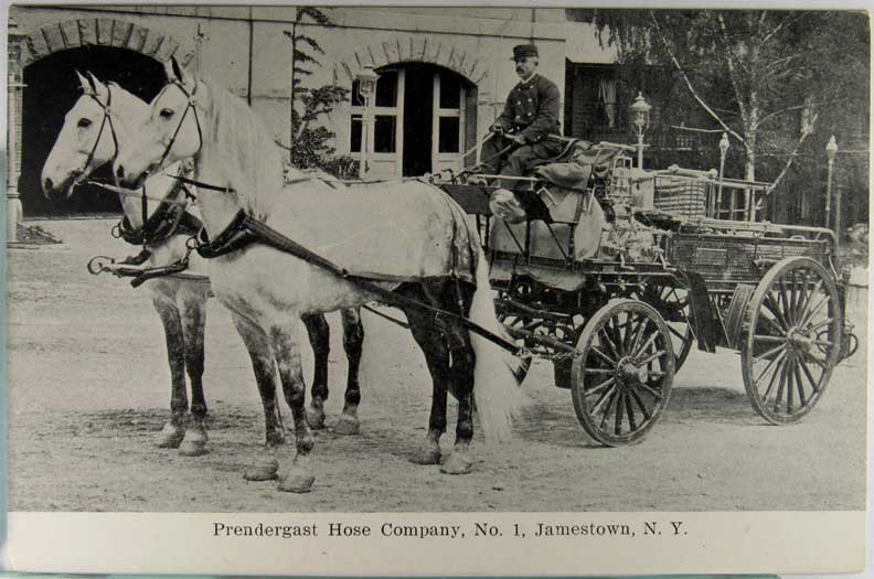 Card # 168573. View Larger | Rotate Horse-Drawn Fire Engine, Jamestown, New York, Printed Photo UB VF