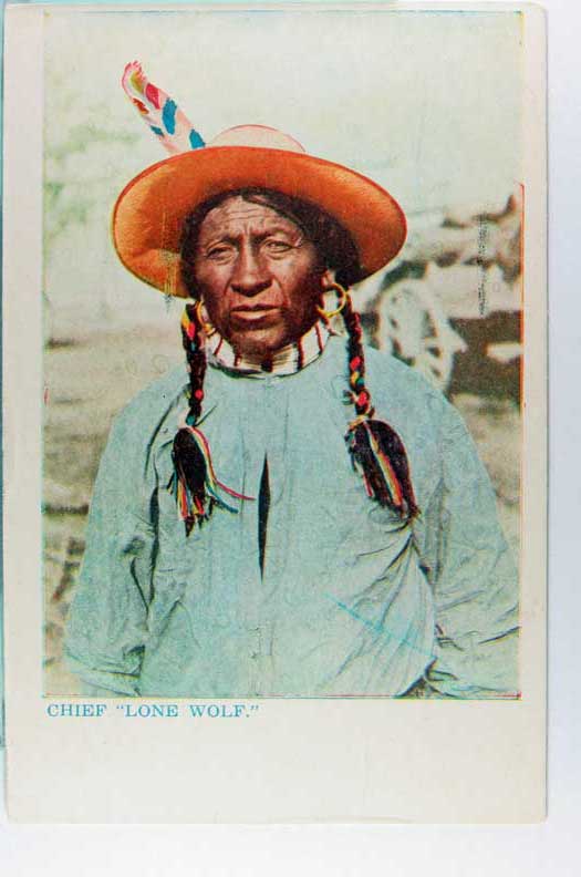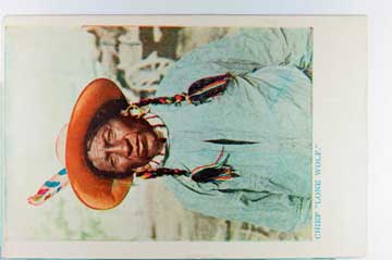 Card # 195616. View Larger | Rotate Chief Lone Wolf, Tinted Printed Photo, 1905 Lewis & Clark Expo. UB tinsel VF