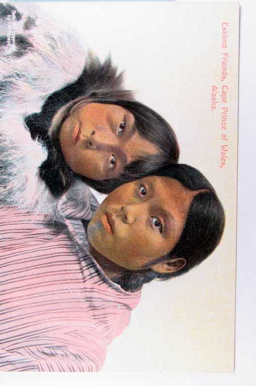 Card # 144801. View Larger | Rotate Inuit, “Eskimo Friends”, Cape Prince of Wales, Alaska, Tinted Printed Photo, 1909 Alaska Yukon Pacific Expo. Ser. DB VF