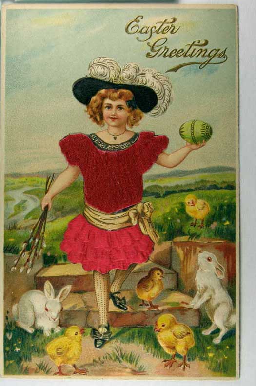 Card # 102348. View Larger | Rotate Novelty Red Silk Dress Add On, German Pub., Easter DB emb VF