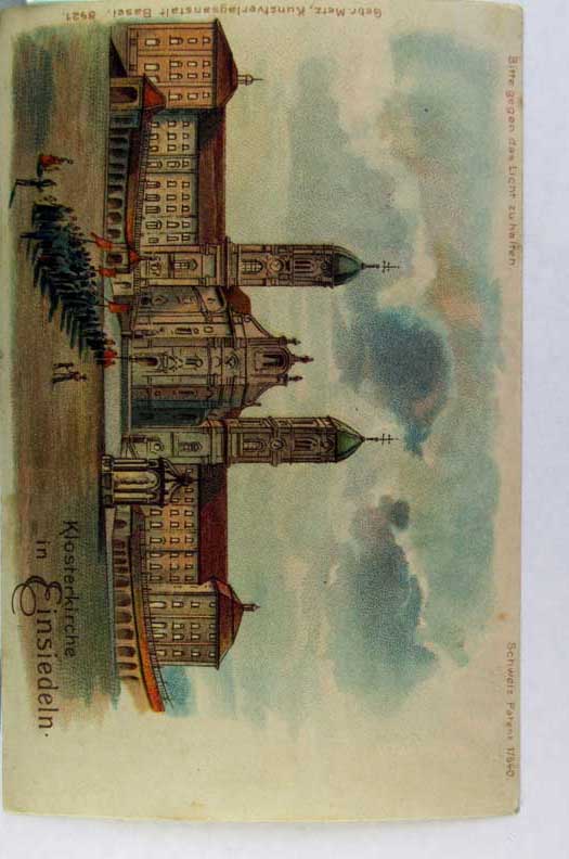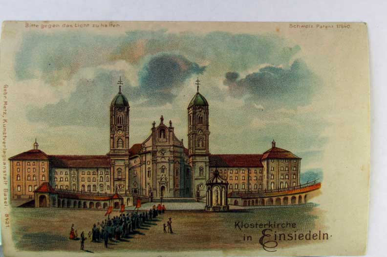 Card # 138929. View Larger | Rotate Hold to the Light, Transparency, Meteor Pub., “Klosterkirche in Einseideln”, Reveals Angels, Used 1901 UB VF