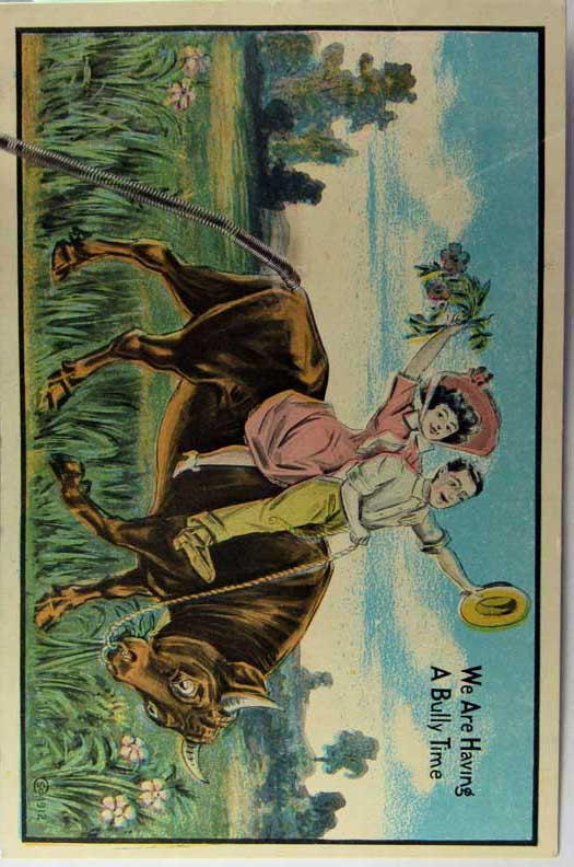 Card # 150548. View Larger | Rotate Novelty Wire-Tail, Schmidt Bros Pub., w/ Riding Bull DB m edge cr Near VF