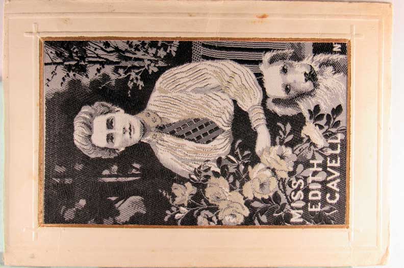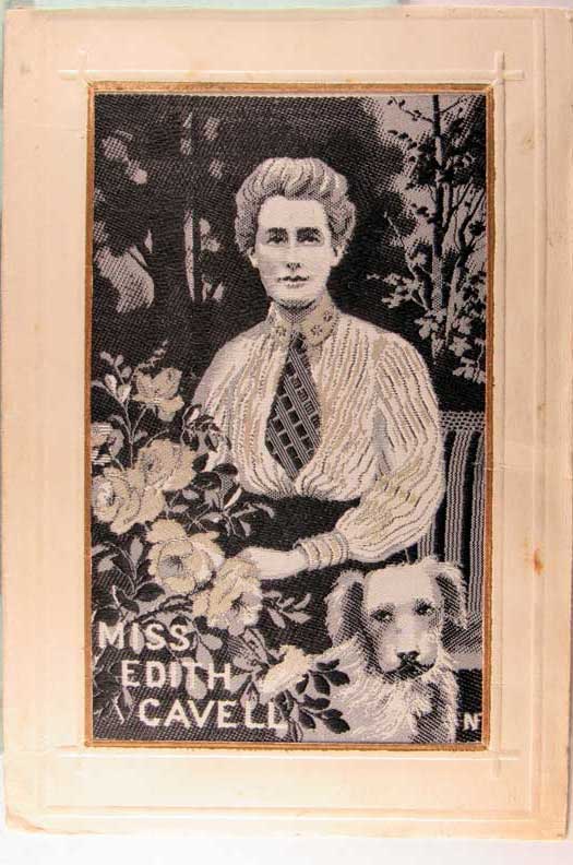 Card # 150857. View Larger | Rotate Novelty Woven Silk, French Pub., “Miss Edith Cavell” UB few frame issues F-VF