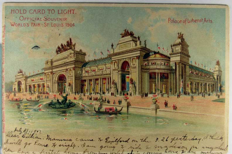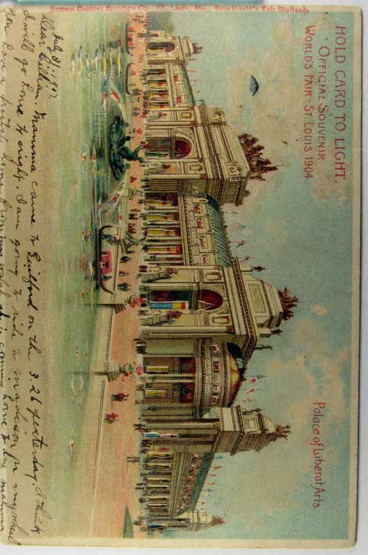 Card # 142753. View Larger | Rotate Hold to the Light, Die Cut, 1904 St. Louis Worlds Fair, Palace of Liberal Arts, Cupples Pub. UB m flts F-VF