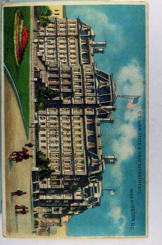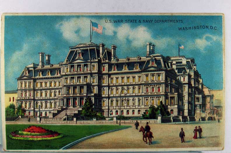 Card # 174007. View Larger | Rotate Hold to the Light, Die-Cut, Washington D.C., Koehler Pub., “U.S. War State & Navy Dept.” DB m cor wear VF