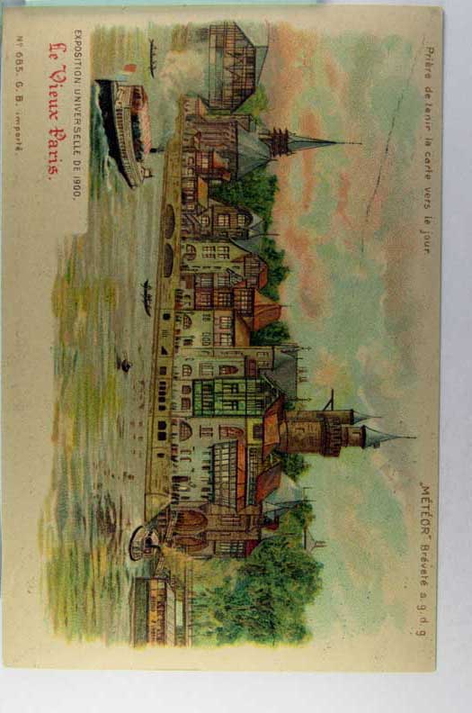 Card # 133631. View Larger | Rotate Hold to the Light, Transparency, 1900 Exposition Universelle, “Le Vieux Paris” UB m wof Near VF