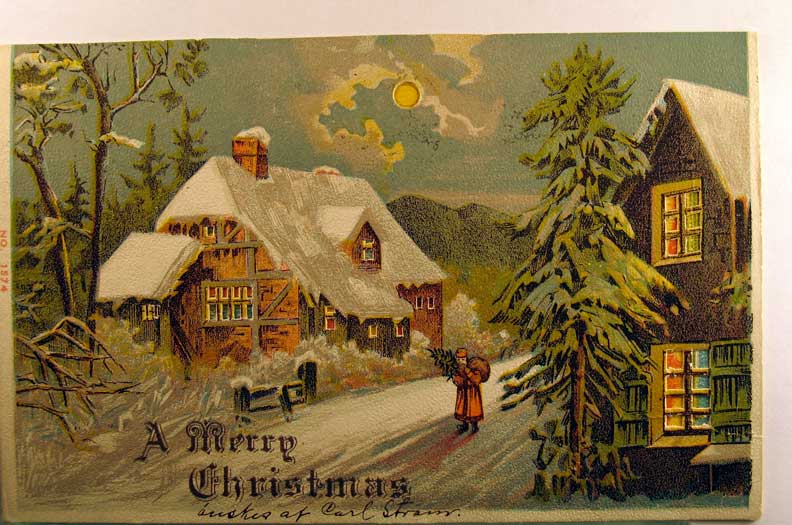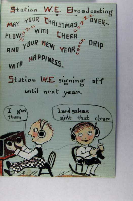 Card # 165156. View Larger | Rotate Novelty Hand-Drawn w/ Non P.C. back, Adv. W.E. Radio Station, Christmas VF
