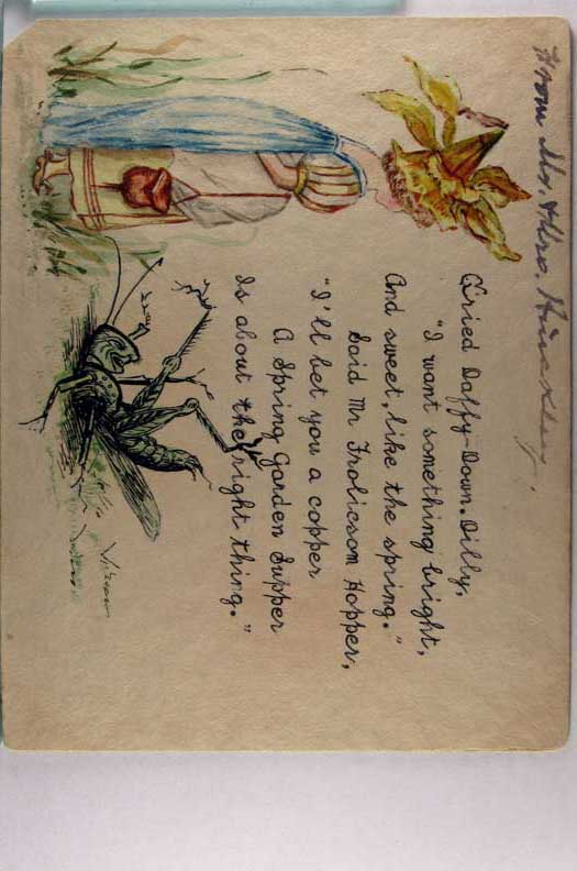 Card # 197390. View Larger | Rotate Novelty Hand-Drawn w/ Flower Fairy, Used 1908 cor flt F-VF