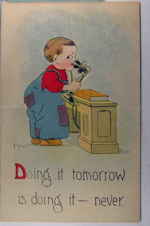 Card # 119260. View Larger | Rotate Novelty Die Cut Easel Card, S&B Pub. #397, Child w/ Telephone DB m hinge wear F-VF
