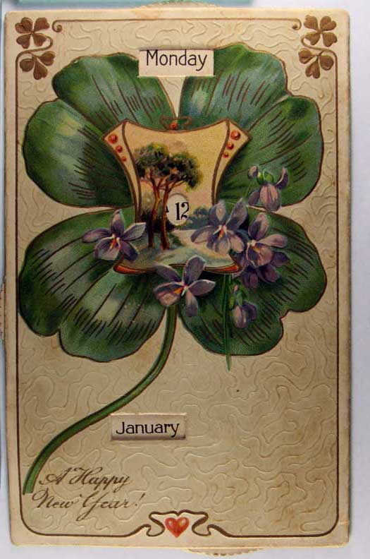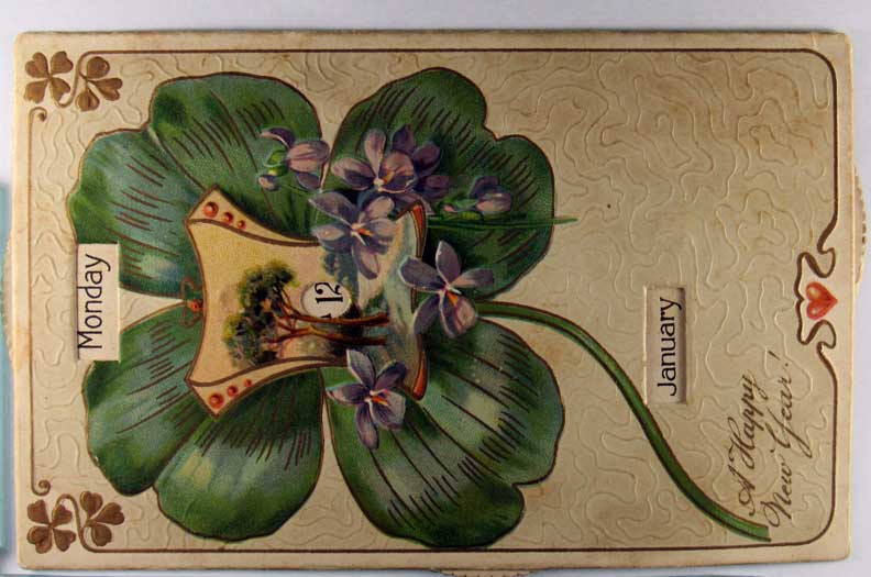 Card # 158622. View Larger | Rotate Hold to the Light, Die-Cut, New Year w/ 1909 Year Date, Used 1908 UB Near VF