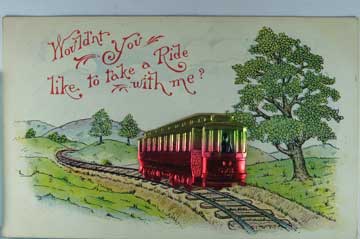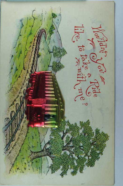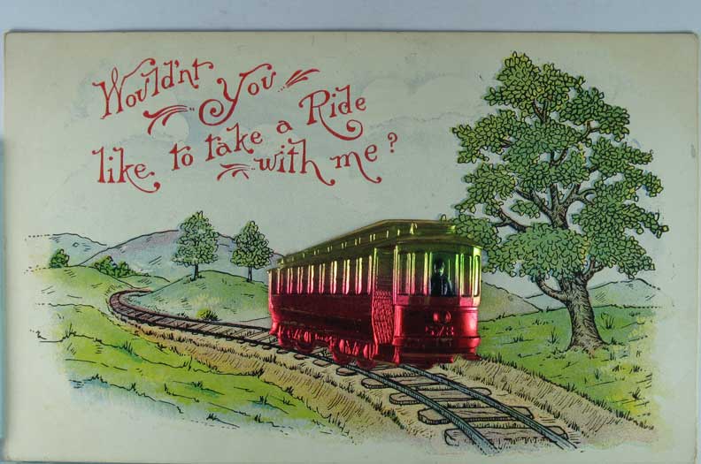 Card # 121269. View Larger | Rotate Novelty Metal Trolley Car Add-On, Dated 1909 m cor wear F-VF