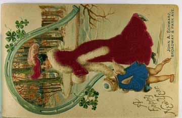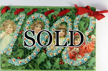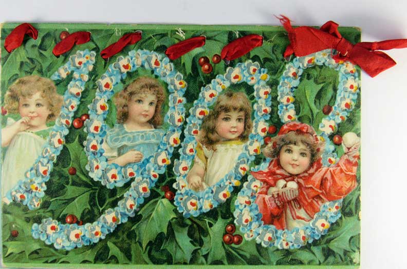 Card # 135349. View Larger | Rotate Hold to the Light, Die Cut, New Year w/ 1908 Year Date DB m edge nick & ribbon added F-VF