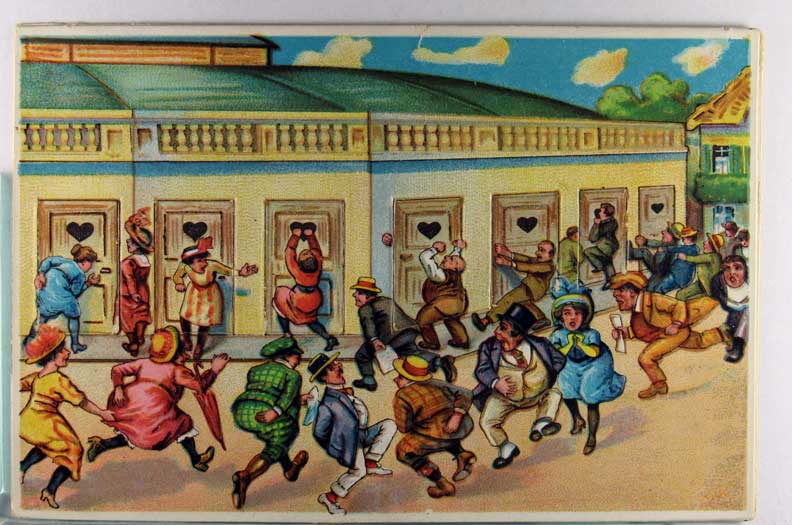 Card # 169966. View Larger | Rotate Novelty Mechanical, German Pub., Bathroom Doors Open, Mostly Never Opened DB VF