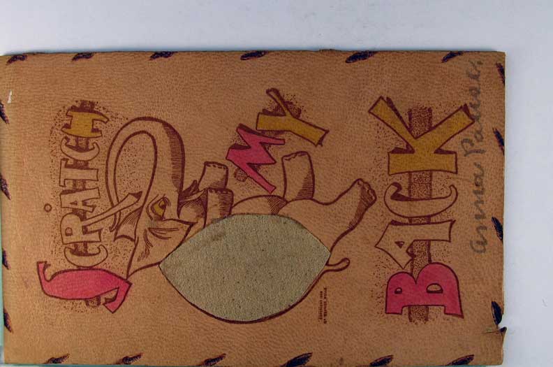 Card # 124472. View Larger | Rotate Novelty Leather w/Match Striker, “Scratch My Back” UB m wof F-VF