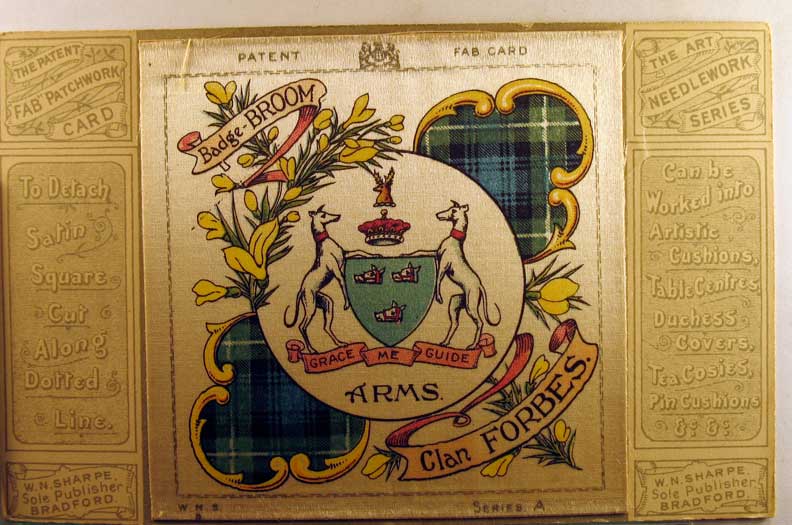 Card # 93433. View Larger | Rotate Woven Silk, FAB Patchwork Card, “Badge - Broom, Clan Forbes”, Ser. A DB m cor wear near VF