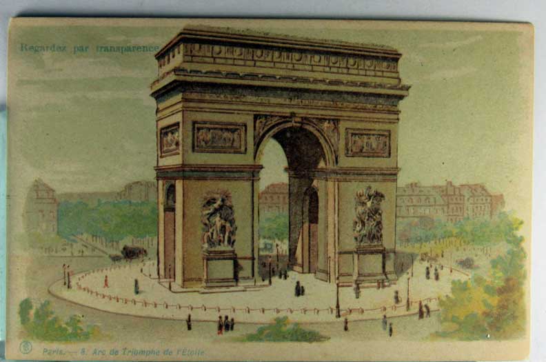 Card # 150864. View Larger | Rotate Hold to the Light, Transparency, Paris Ser. #8, Arc de Triumphe UB Near VF