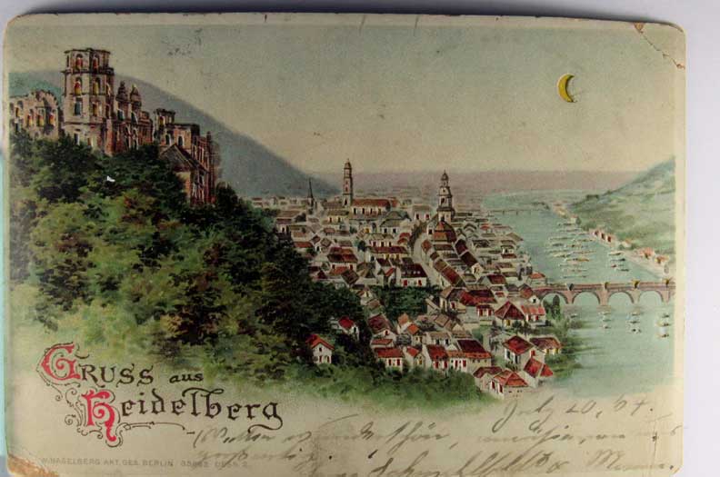 Card # 130996. View Larger | Rotate Hold To The Light, Die Cut, “Gruss Aus Heidelberg”, German Pub., Used 1904 UB flts