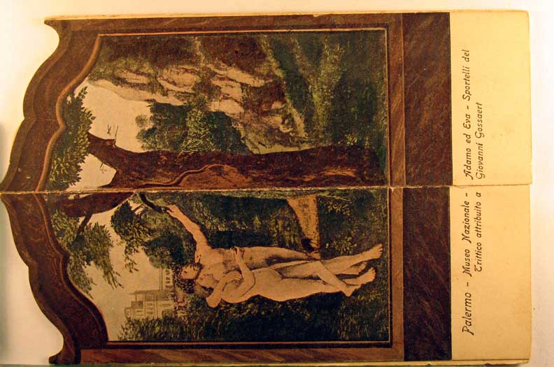 Card # 64647. View Larger | Rotate Italian pub., Die Cut Postcard Opens to Religious Scenes UB near VF
