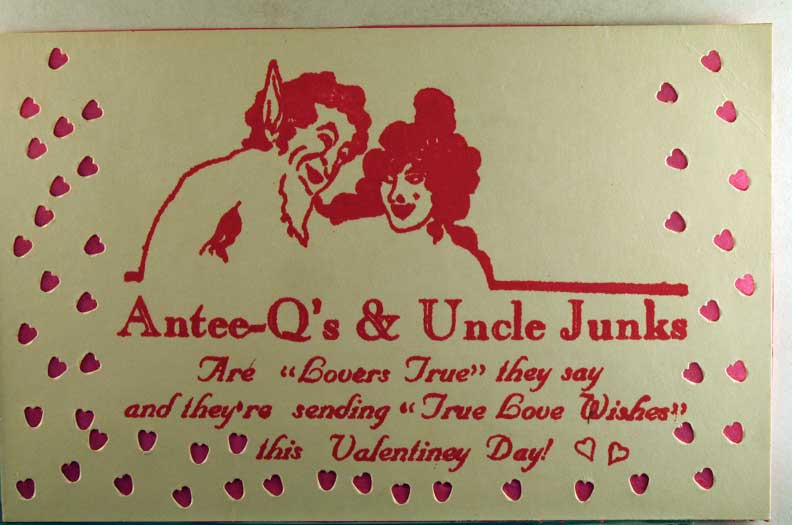 Card # 119261. View Larger | Rotate Novelty Die Cut Easel Card, S&B Pub. #398, Penny Valentine Adv. on Back DB m hinge wear F-VF