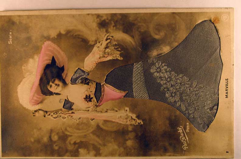 Card # 46837. View Larger | Rotate Novelty Cloth Dress Add On, Tinted Real Photo by Paul Darby Paris, “Marville” m cor st F-VF