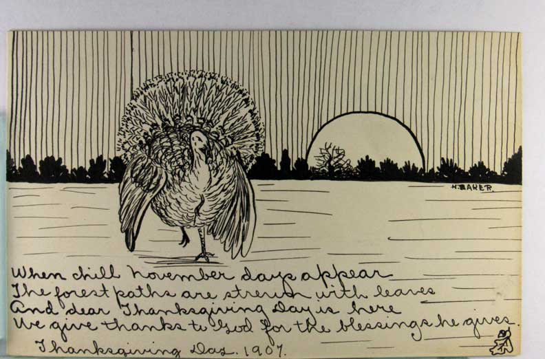 Card # 187288. View Larger | Rotate Novelty Hand-Drawn, Thanksgiving, Dated 1907 VF