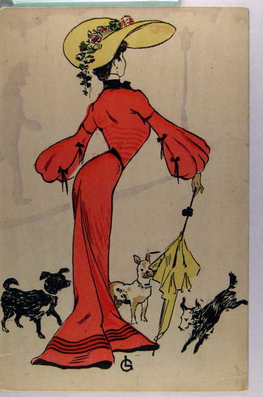 Card # 178661. View Larger | Rotate Lady w/ Dogs, PL Paris Pub. DB m edge crs Near F-VF
