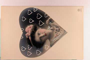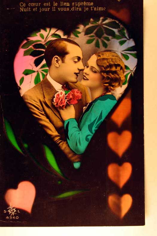 Card # 12082. View Larger | Rotate Couple, French tinted photo w/ Hearts, SOL # 4360, very nice near VF