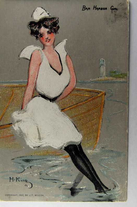 Card # 150670. View Larger | Rotate Bathing Beauty, Art. Sig. H King, “Bar Harbor Girl”, cpr. 1907 DB m cor wear F-VF