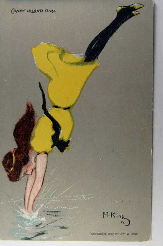 Card # 150671. View Larger | Rotate Bathing Beauty, Art. Sig. H King, “Coney Island Girl”, cpr. 1907 DB m cor wear Near VF