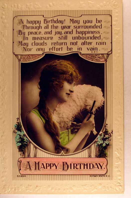 Card # 21567. View Larger | Rotate English Tinted Photo, Rotary Pub. B.2894, w/ Birthday Greeting DB emb edge VF