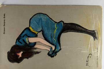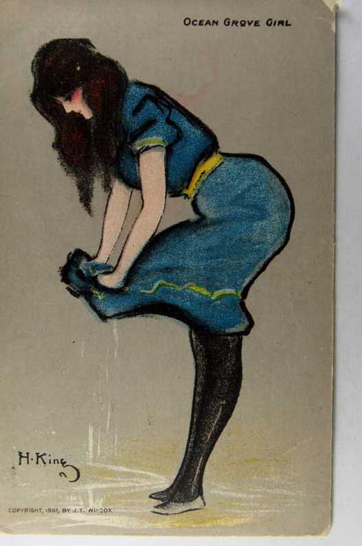 Card # 150751. View Larger | Rotate Bathing Beauty, Art. Sig. King, “Ocean Grove Girl”, Used 1909 DB m cor wear & cor crs F-VF