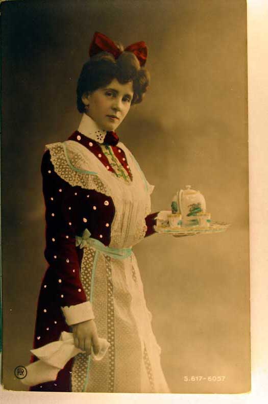 Card # 64658. View Larger | Rotate Maid w/ Tea Service, German Tinted Photo, RPH # S. 617 - 6057 DB near VF