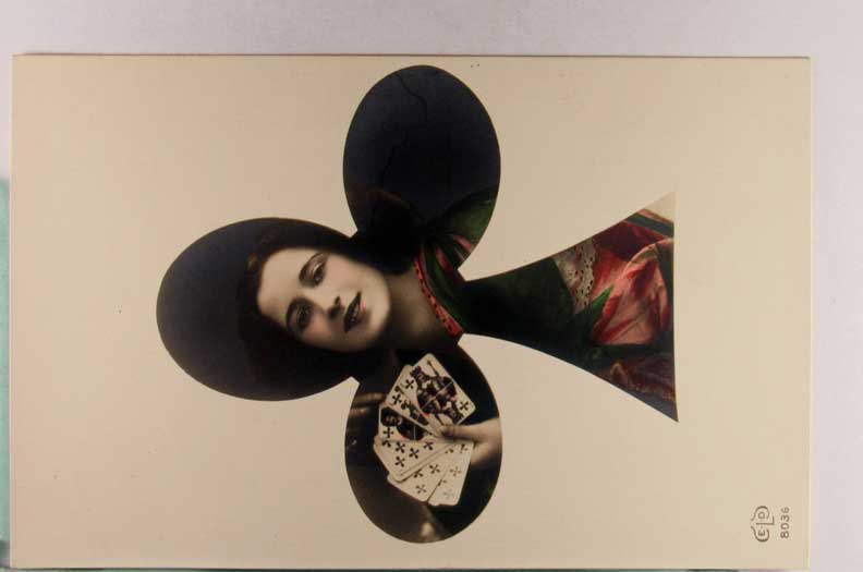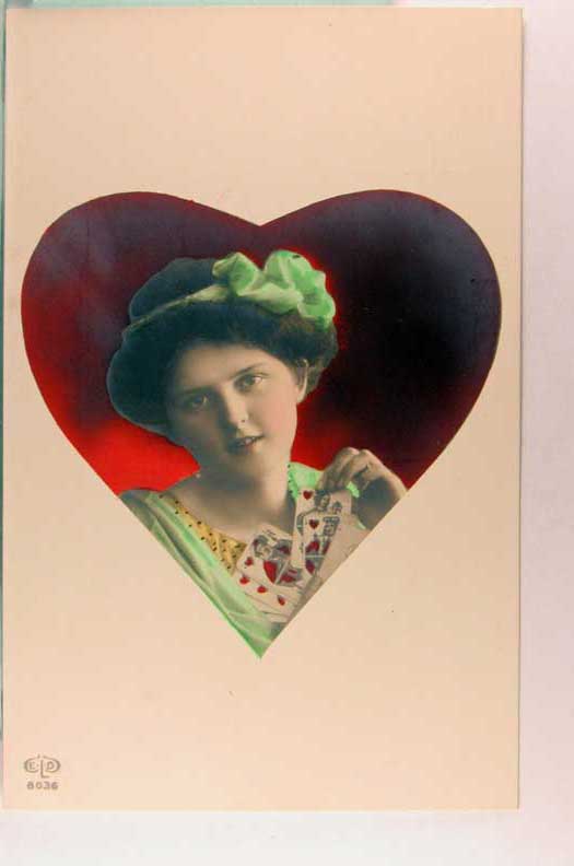 Card # 195374. View Larger | Rotate Pretty Lady w/ Playing Cards, Tinted Real Photo, #8036 DB VF