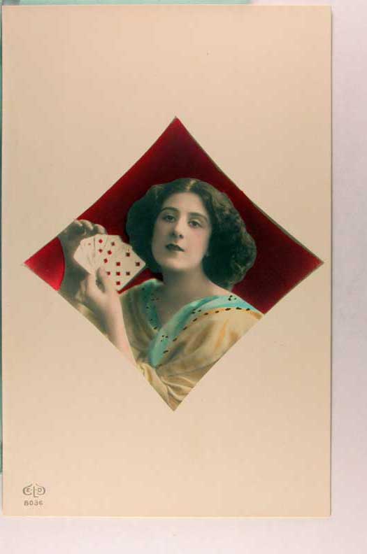 Card # 195373. View Larger | Rotate Pretty Lady w/ Playing Cards, Tinted Real Photo, #8036 DB VF