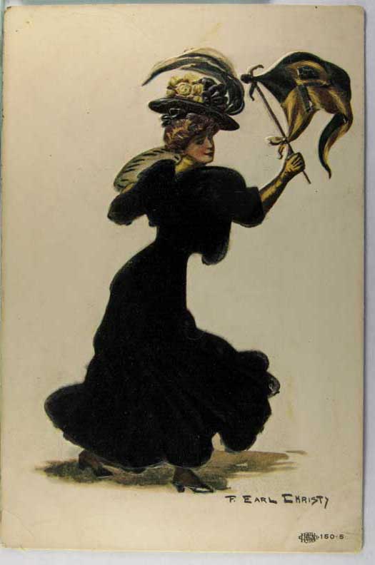 Card # 164889. View Larger | Rotate College Girl, Art. Sig. Christy, Princeton, #150-5, w/Black Silk Add-On DB emb cor crsw F-VF
