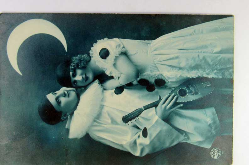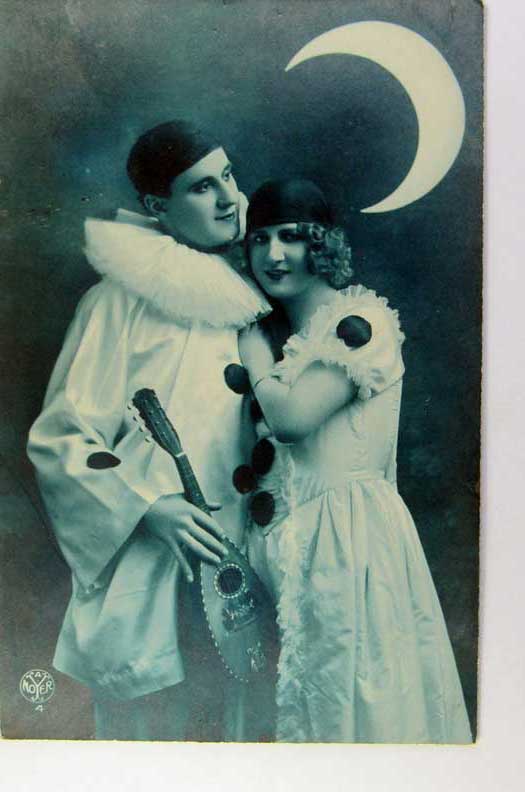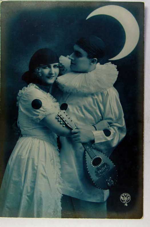 Card # 165439. View Larger | Rotate Couple incl. Pierrot, Blue Tinted French Real Photo by Noyer VF
