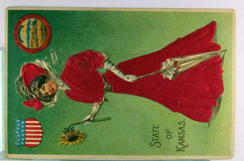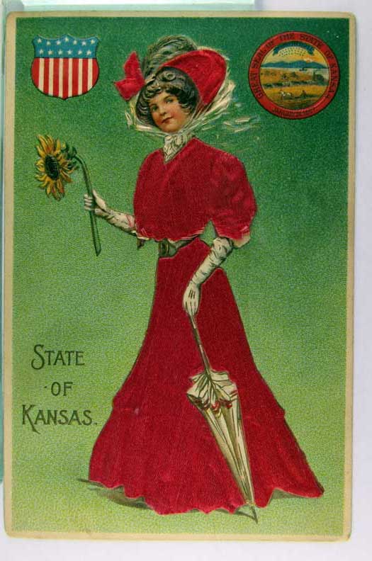Card # 155661. View Larger | Rotate State Ladies Ser., “Kansas”, w/ Novelty Silk Add-On DB emb m cor wear & m edge cr F-VF