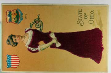 Card # 152216. View Larger | Rotate State Ladies Ser., “Ohio”, w/ Novelty Purple Silk Add-On DB emb VF