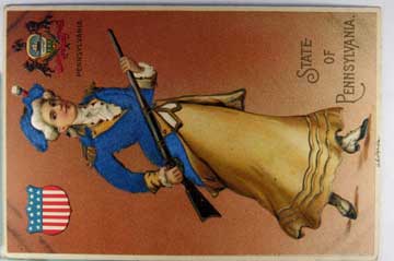 Card # 164922. View Larger | Rotate State Ladies Ser., Langsdorf Pub., “Pennsylvania”, w/ Novelty Silk Added DB emb m wof & cor album marks Near F-VF