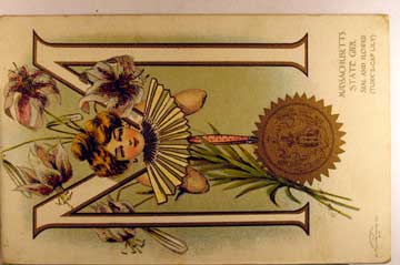 Card # 17063. View Larger | Rotate State Girls Ser., Platinachrome Co. Pub., Massachusetts w/ Seal & Flower DB m cor cr F