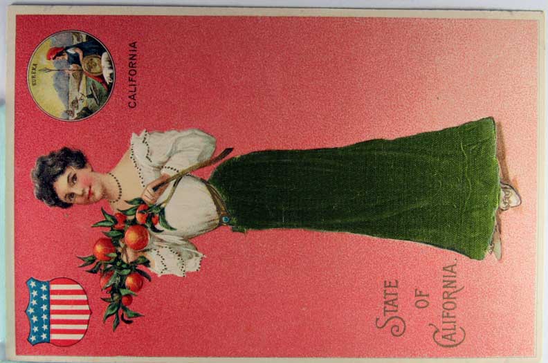 Card # 149676. View Larger | Rotate State Ladies Ser. w/ Silk Add-On, “California” DB emb VF