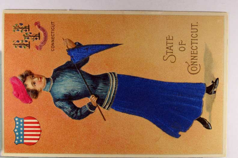 Card # 143533. View Larger | Rotate State Ladies Ser. w/ Novelty Blue Silk, “Connecticut” DB emb VF