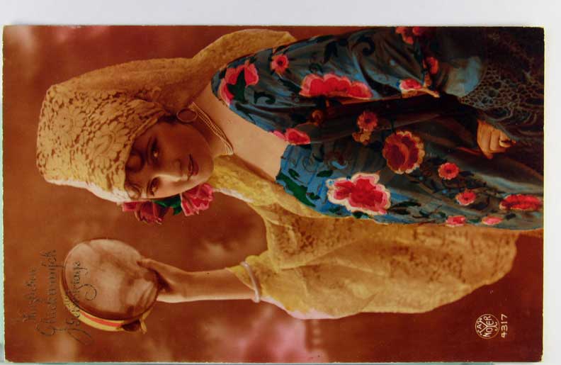 Card # 40637. View Larger | Rotate Tinted Photogravure by Reutlinger, “Sorrano”, w/ Attractive Glitter Added, Used, Very Nice UB VF
