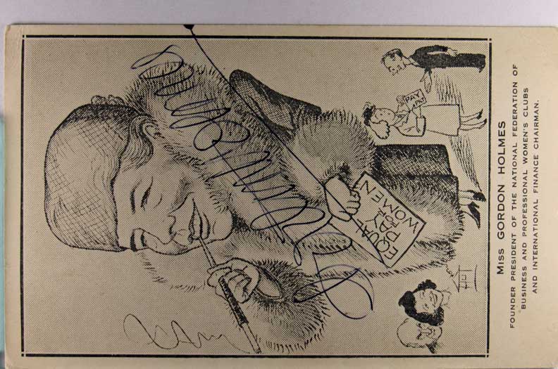 Card # 190207. View Larger | Rotate Women’s Suffrage, British Pub., Miss Gordon Holmes, President of National Federation of Business Women’s Club, w/ Autograph 1940s m cor cr Near VF
