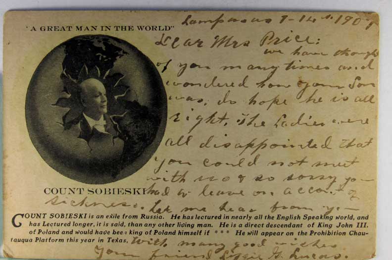 Card # 165234. View Larger | Rotate Russian Exile Count Sobieski, Appeared on the Prohibition Platform, Texas, Used 1907 UB m flts Near F-VF