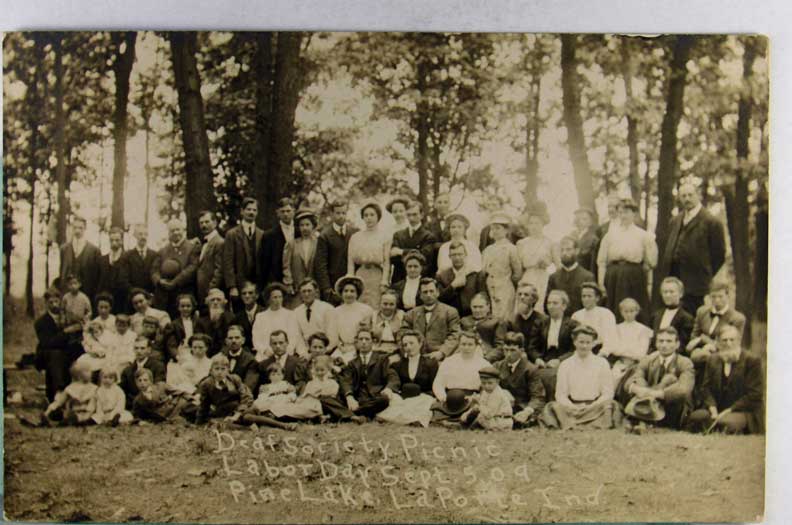 Card # 165797. View Larger | Rotate U.S. Patriotic, “Deaf Society Picnic Labor Day”, La Porte, Indiana, Real Photo, Dated 1909 m cor wear VF