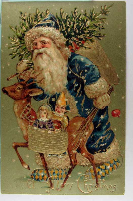 Card # 173571. View Larger | Rotate Blue Suited Santa, German Pub., Used 1910 DB emb m cor cr Near VF